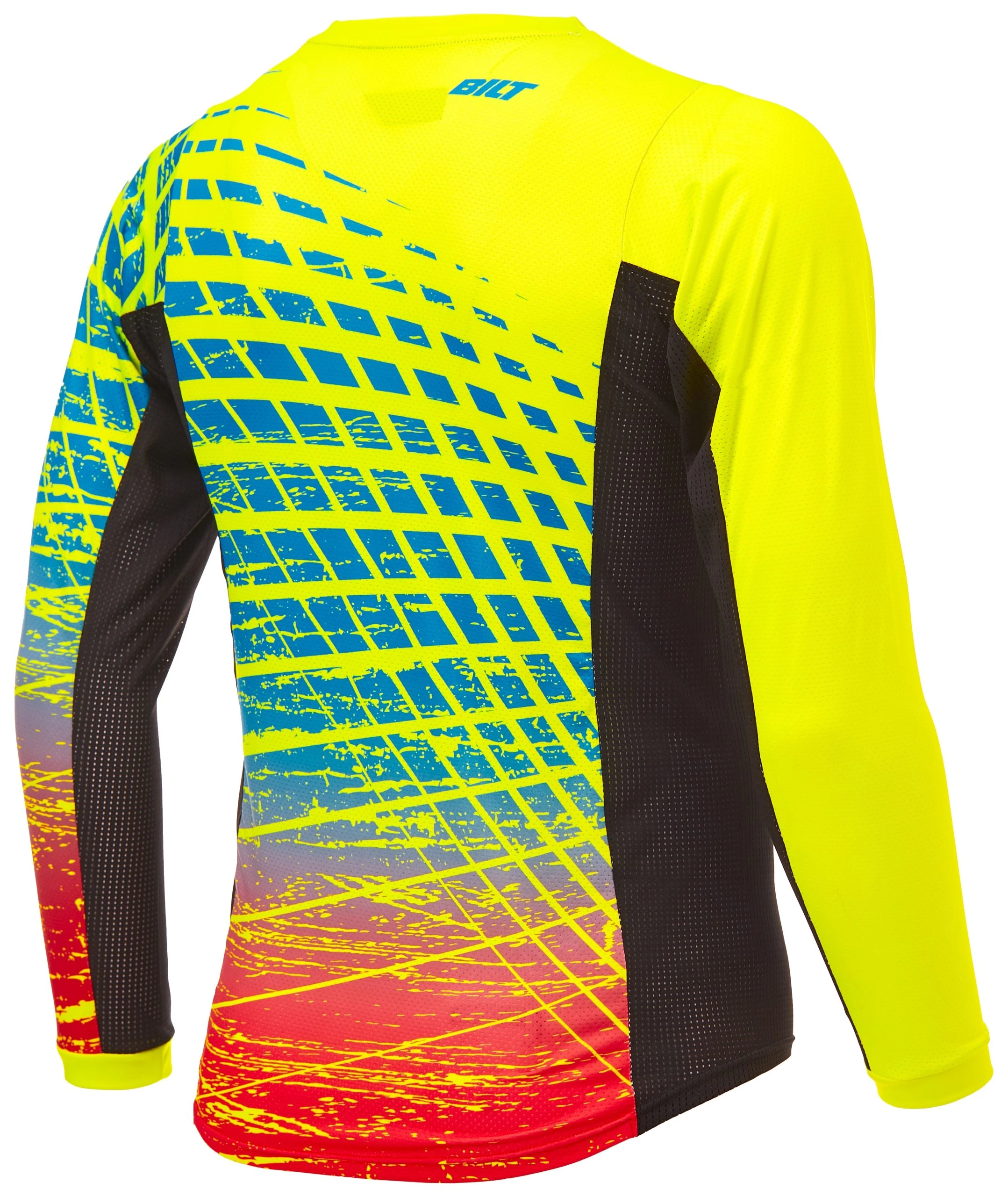 The Lux Pro Air series is BILT’s premium level offroad jersey, offering more technical features and ventilation than the standard Lux Jersey. The Lux Pro Air Jersey starts with an all new chassis design that includes a laser perforated pattern at the chest, abs and down the center of the back to increase airflow in high perspiration areas and maximize airflow during heated races. High flow mesh at the torso sides and inner arms also work to maintain cooling airflow. The jersey chassis features a stitchless bonded collar and cuffs plus raglan style sleeves for optimal comfort and performance.