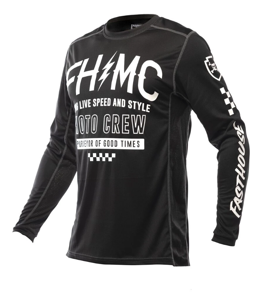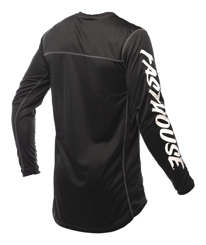 The Fasthouse Grindhouse Cypher Jersey is a race day essential for any serious rider. Dyed polyester ensures that colors stay vibrant while an over locked stitching pattern gives extra strength and durability. This keeps the jersey looking as good as the day it was delivered. Moisture wicking fabric keeps riders dry all race and high quality silk screening keeps the graphics on the jersey.Â