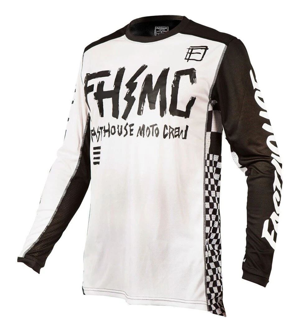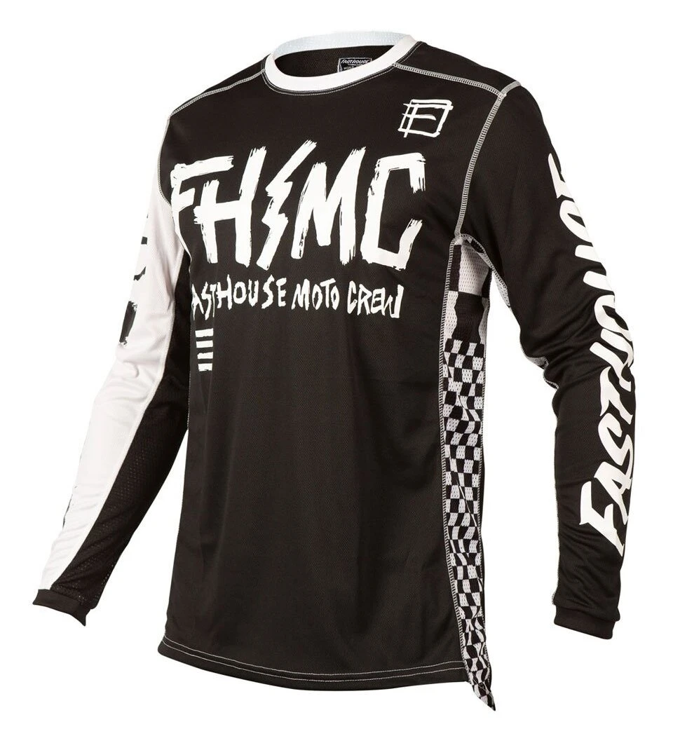 The Fasthouse Grindhouse Youth Punk Jersey is a race day essential for any serious rider. Dyed polyester ensures that colors stay vibrant while an over locked stitching pattern gives extra strength and durability. This keeps the jersey looking as good as the day it was delivered. Moisture wicking fabric keeps riders dry all race and high quality silk screening keeps the graphics on the jersey.