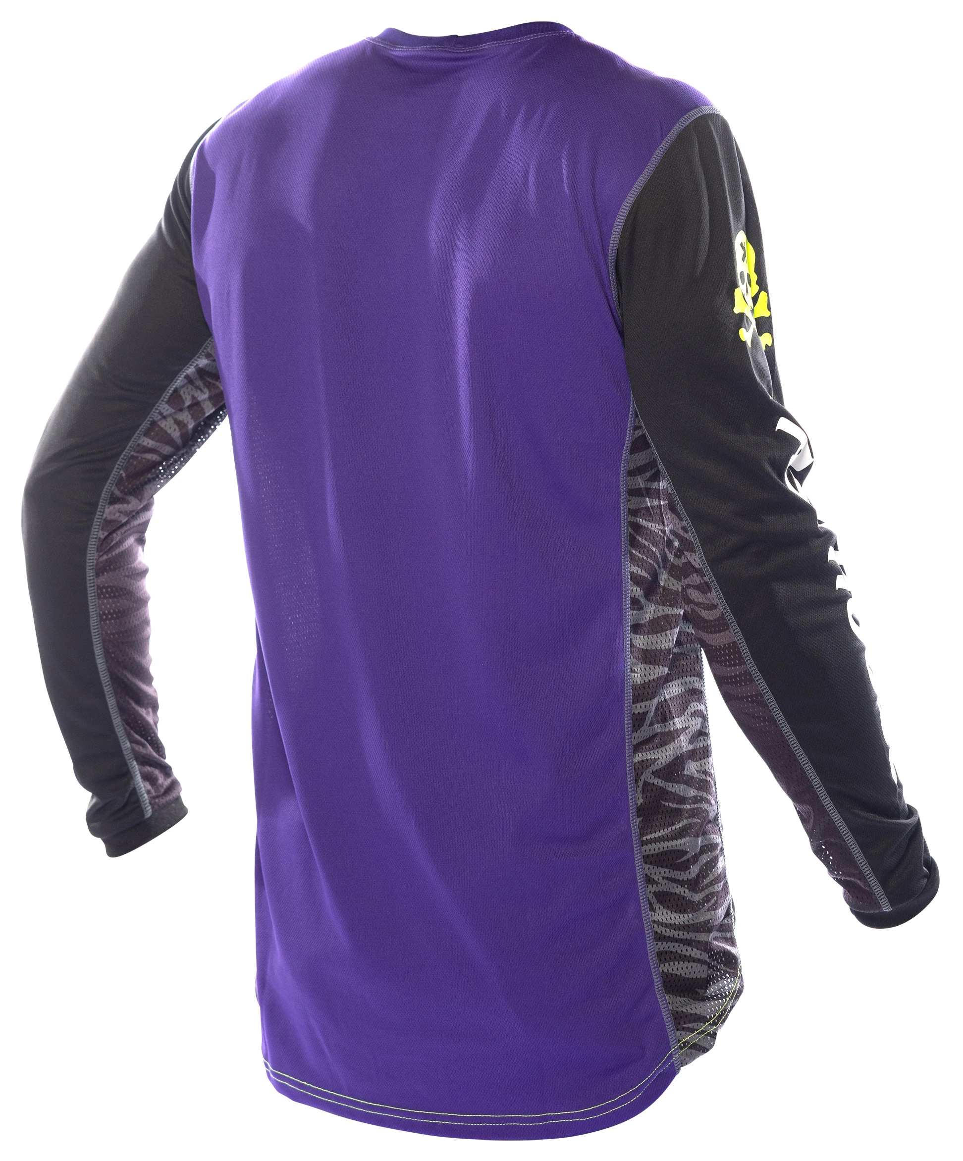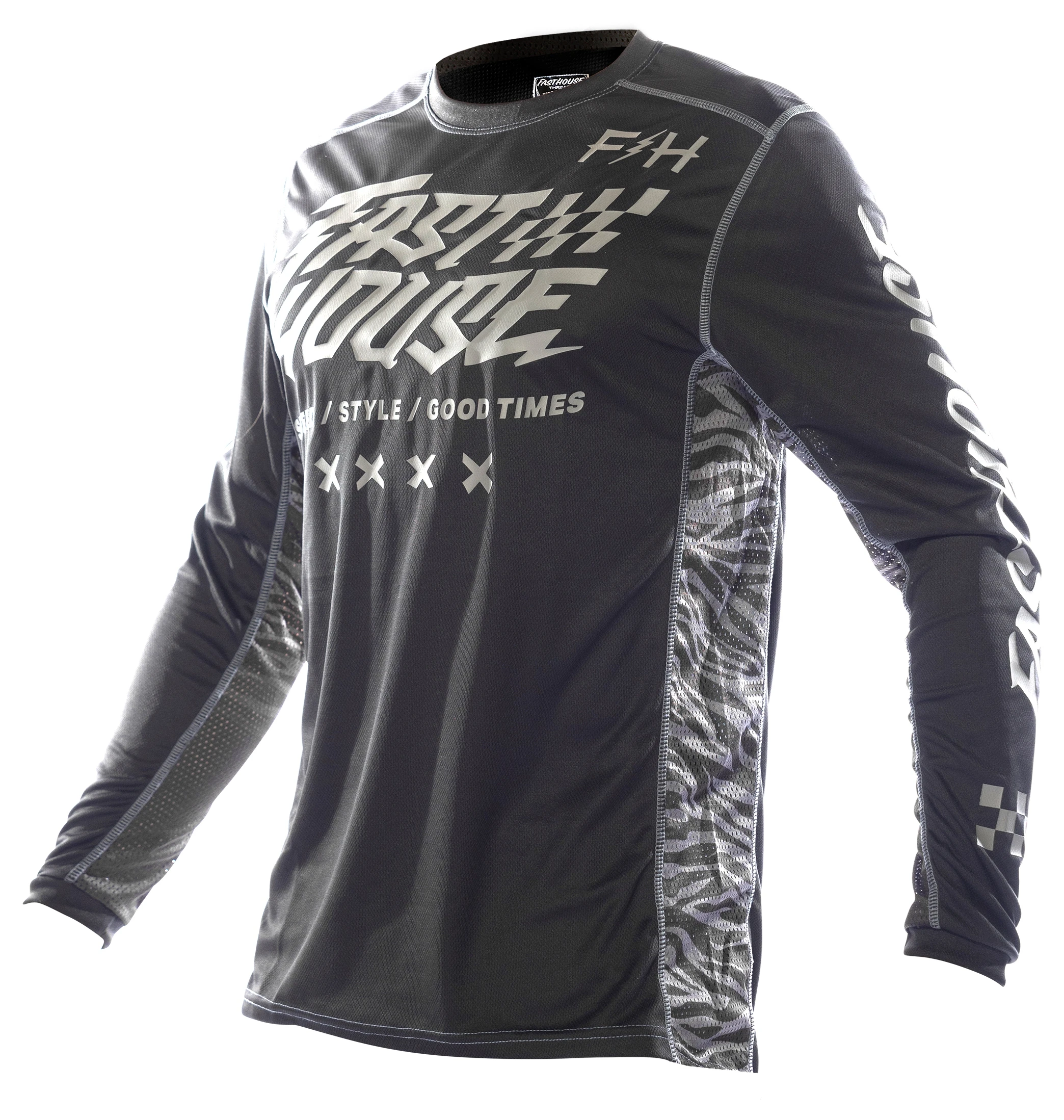 The Fasthouse Youth Grindhouse Rufio Jersey is a race day essential for any serious rider. Dyed polyester ensures that colors stay vibrant while an over locked stitching pattern gives extra strength and durability. This keeps the jersey looking as good as the day it was delivered. Moisture wicking fabric keeps riders dry all race and high quality silk screening keeps the graphics on the jersey.Â