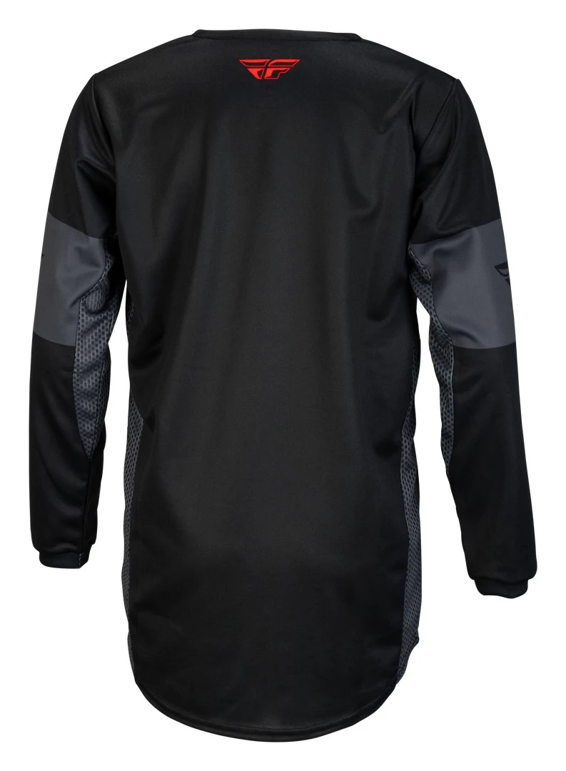 Stay cool with the superior breathability of the Fly Racing Kinetic Khaos Jersey. The dual-mesh construction allows massive airflow while filtering out the dirt. The dual-layer mesh construction provides a much greater opportunity for airflow and moisture management with durability that easily matches conventional jersey materials. The stretch, multi-panel collar creates a comfortable fit and integrates well with roost guards and impact armor, worn either on the inside or outside of the gear. The standard MX fit balances mobility with semi-tapered tailoring. You bring the heat and the Kinetic Khaos Jersey will cool you down.