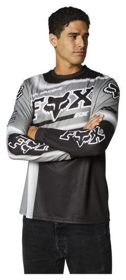 The retro-patterned Fox Racing Powerband Jersey features a crew neckline, long sleeves, and a race inspired design.