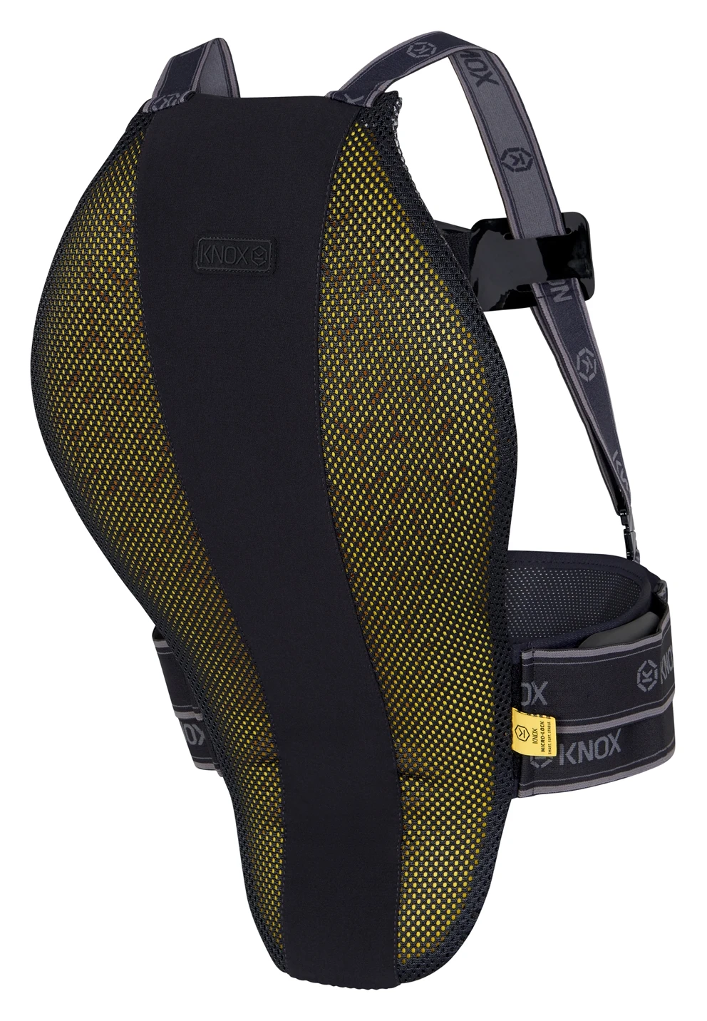 The Knox Microlock Air MK2 Back Protector features numerous improvements and additions on the previous model. It has been given a fresh new look with a redesigned removable outer cover and an improved double waist strap system for a more secure and comfortable fit. Knox Micro-Lock Air back contours to the back and uses SMART technology to keep the armor super soft to touch but the cells lock on impact. The locking action increases the amount of impact absorbed by the back protector and reduces the energy passed through to the back.